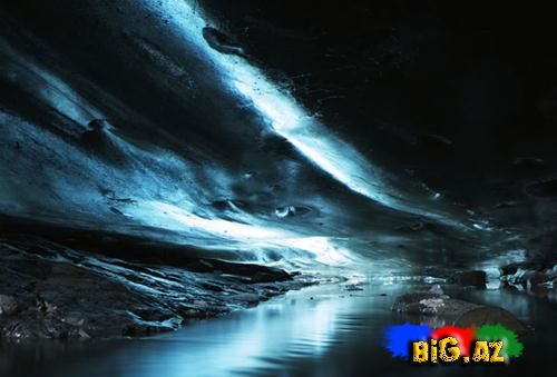 Skaftafell-də buzlaq altında dərində yerləşmiş buzlu mağara, İslandiya.