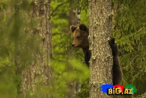 Ayı balası yaşlı ayını görən kimi ağacda gizlənir. Dişi ayılar öz uşaqlarını təhlükə vaxtı ağaclara çıxmağa öyrədirlər.