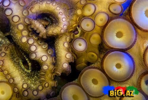 Kopenhagendə Tivoli heyvanat parkında akvariumun şüşəsində səkkizayaqlı osminoq, Danimarka.