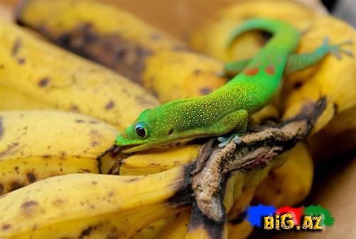Gekkon kərtənkələsi bananı yalayır, Havay adaları.